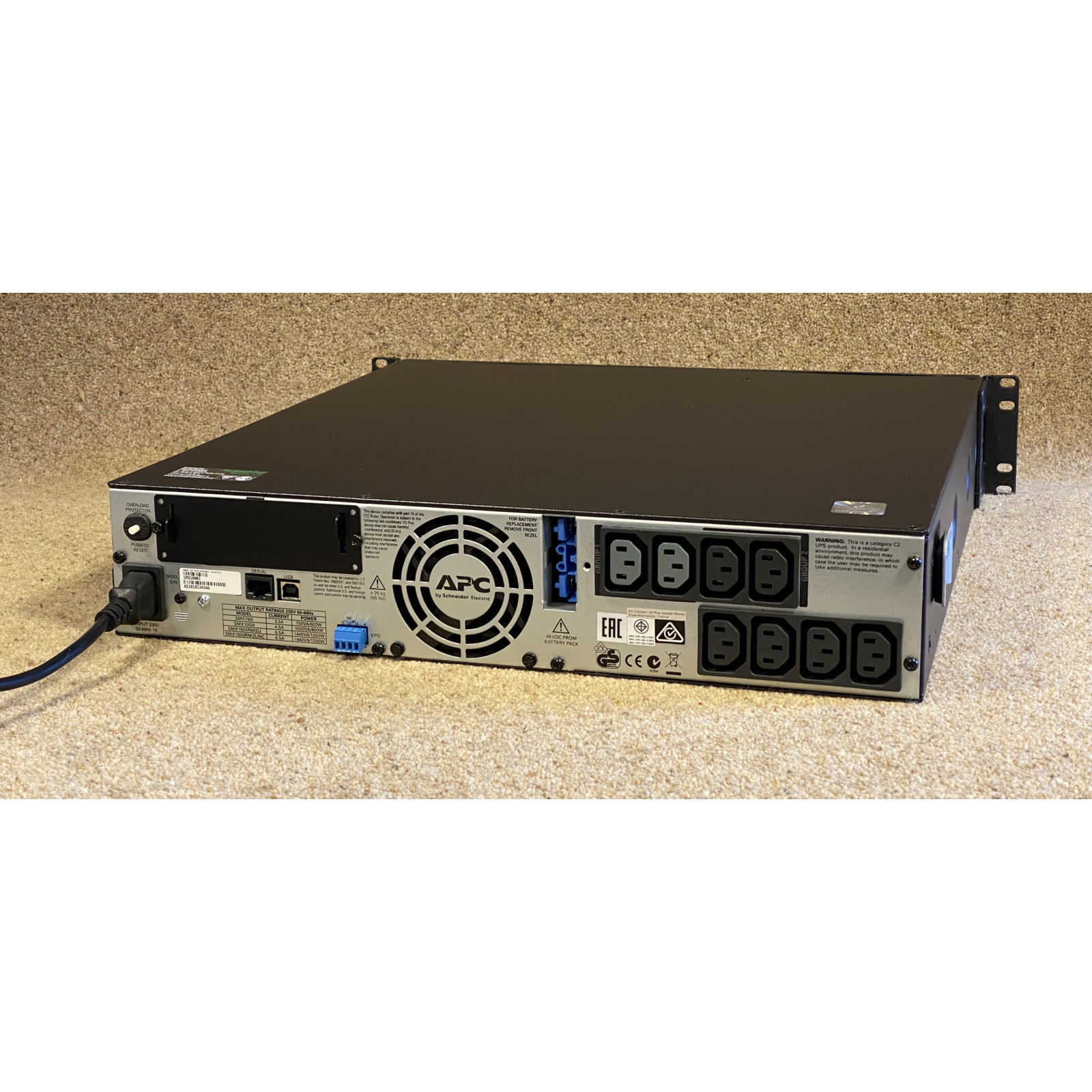This APC SMX1000I 2U rack-mountable UPS has had new cells fitted to its battery pack and been thoroughly tested by our technicians.